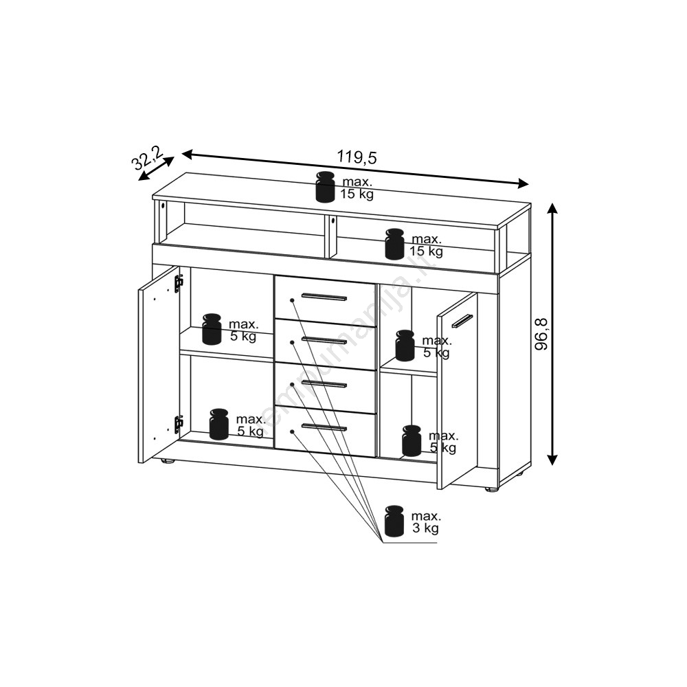 • Viršutinė plokštė yra pakankamai erdvi dekoracijoms, elektronikai ar kitiems būtiniausiems daiktams.