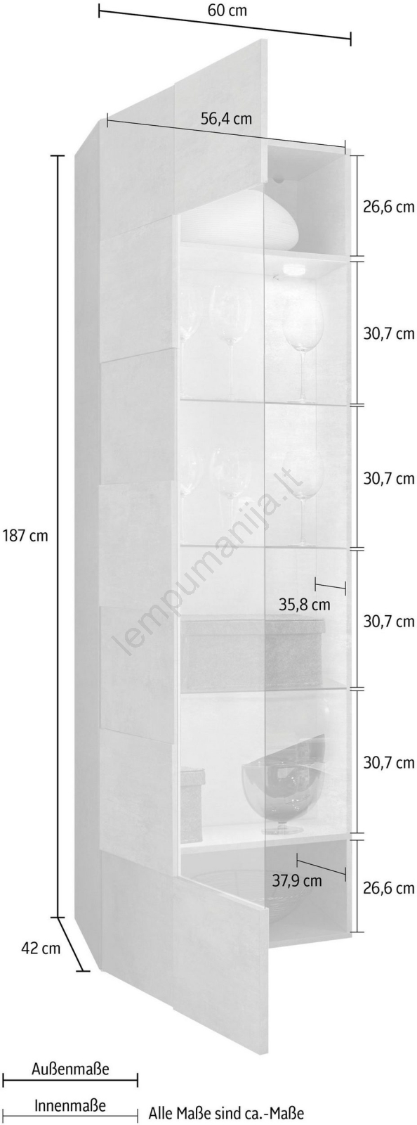 • Dėžė nr. 2: 7,4 x 191,2 x 63,7 cm (35 kg).
