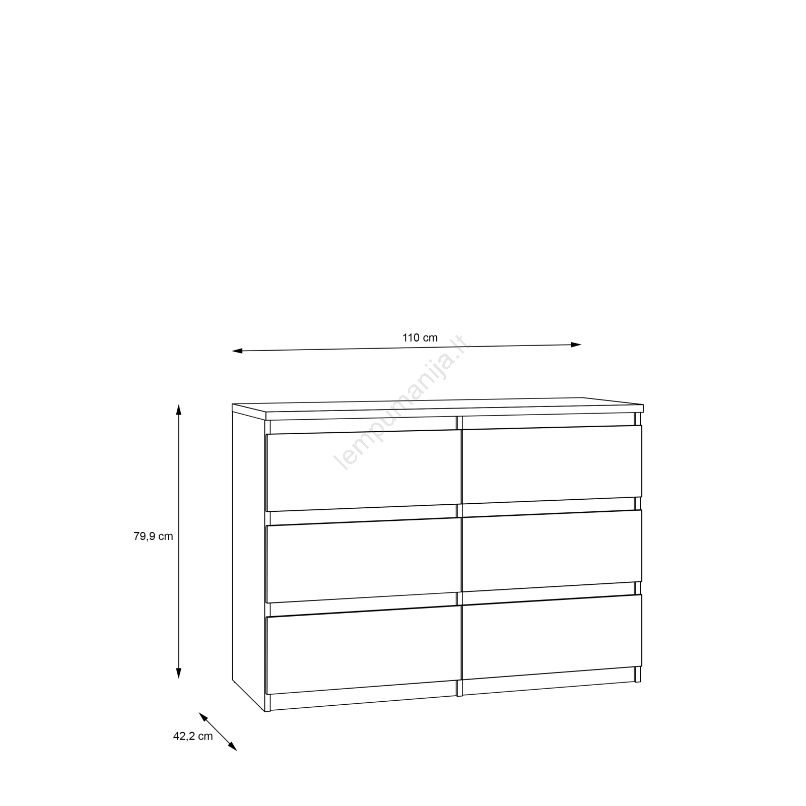• Viršutinė plokštė yra pakankamai erdvi dekoracijoms, elektronikai ir kitiems būtiniems daiktams.