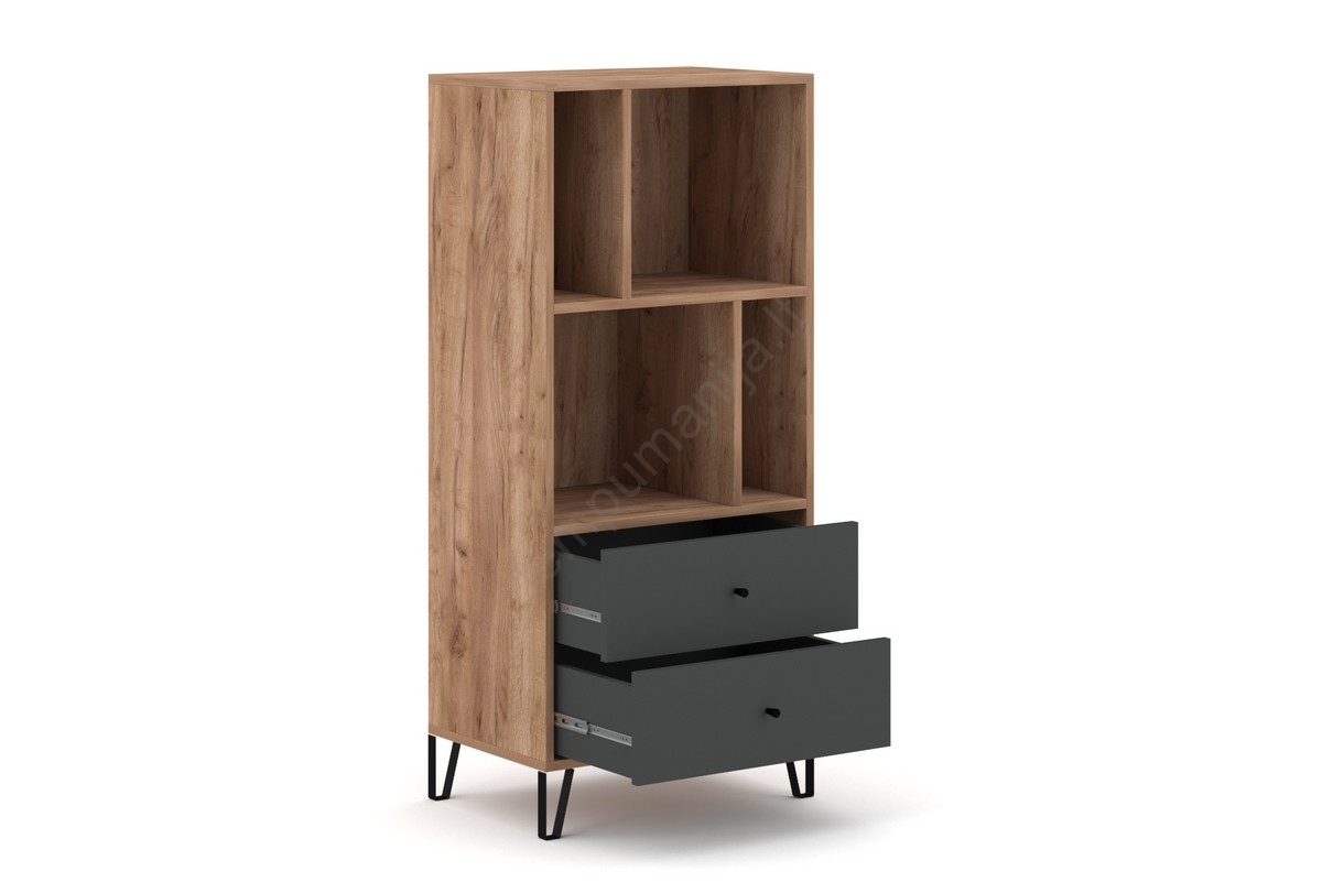 • Turi keturias atviras lentynas ir du stalčius, skirtus tvarkingam daiktų laikymui.