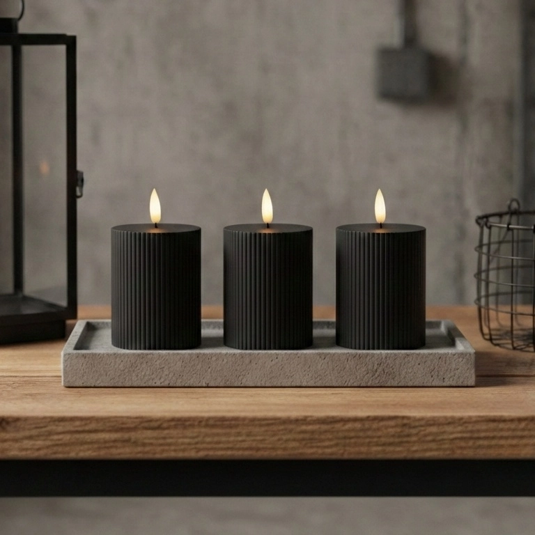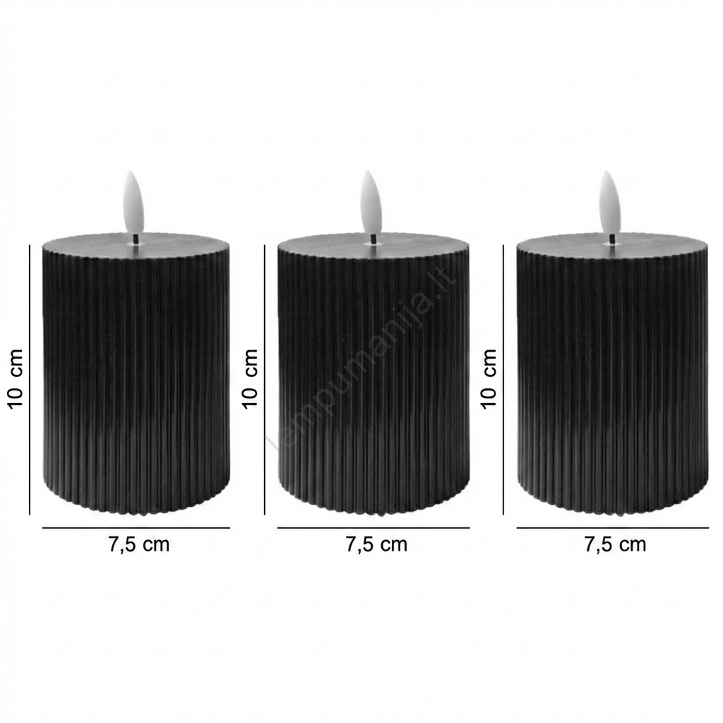 • Komplektas: 3 vnt. BRILLO LED žvakių (LED/2xAA), 10 cm, juodos, su nuotolinio valdymo pultu