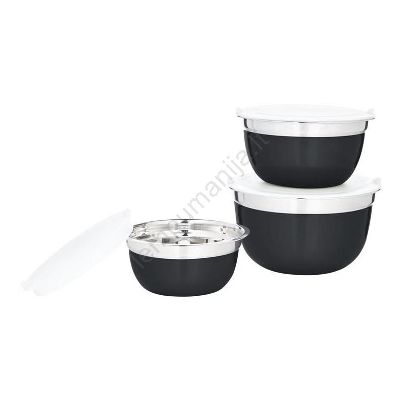 Rinkinys 3x juodos spalvos dubenys su dangčiais, nerūdijančio plieno | Lempumanija
