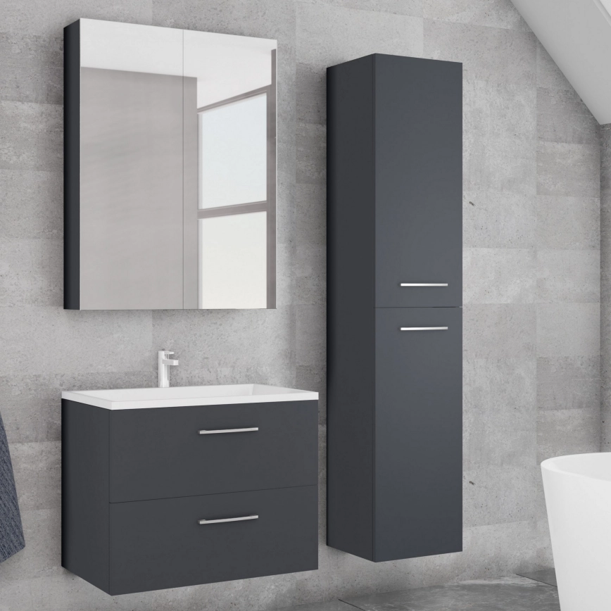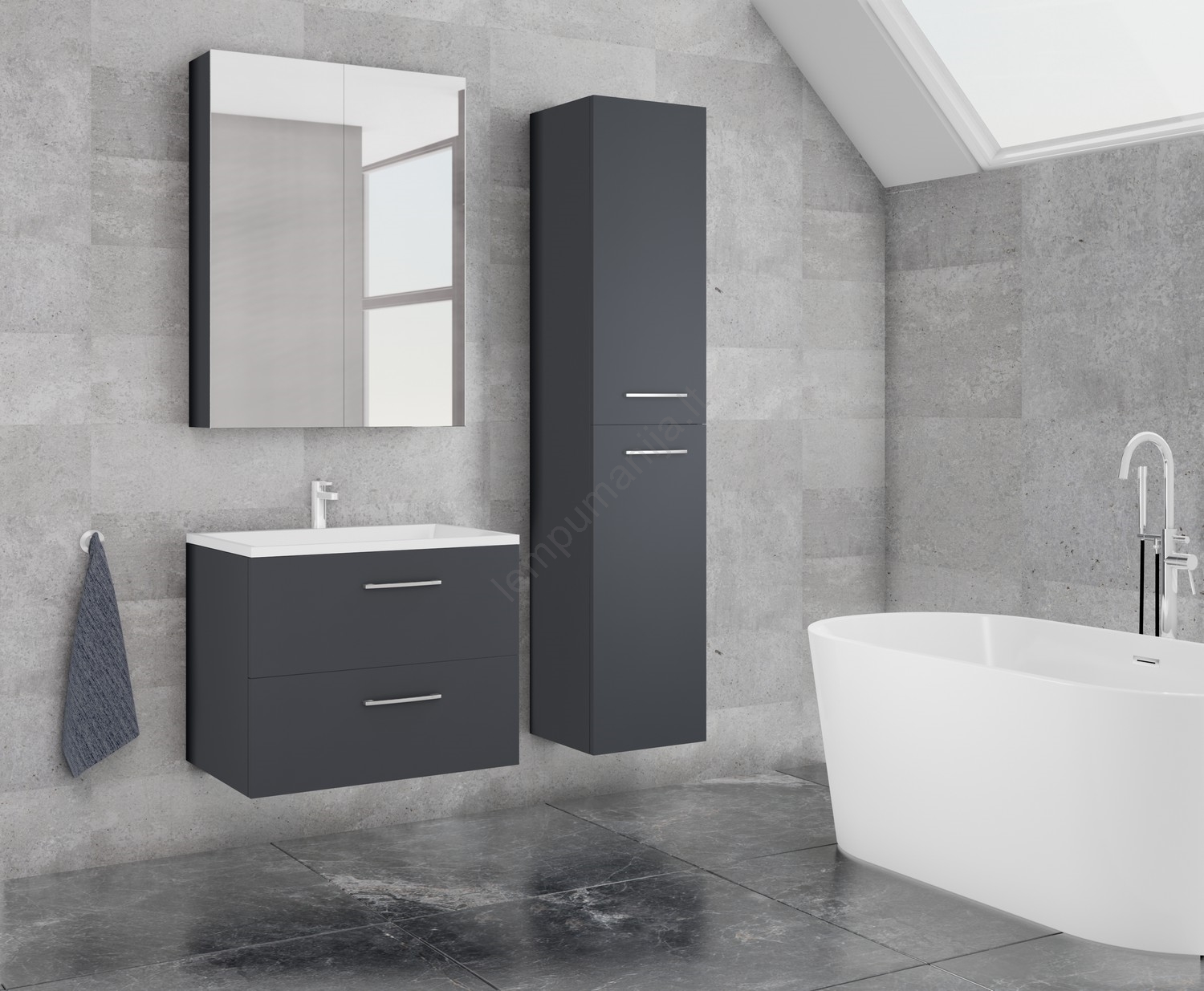 • Vonios spintelė su praustuvu KATE + veidrodinė spintelė + sieninė spintelė antracito spalva