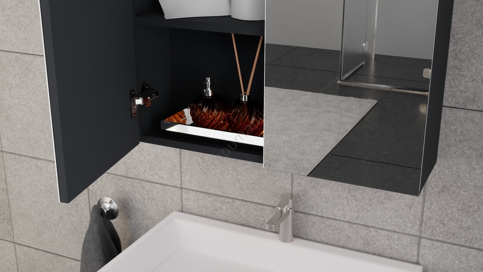 Komplektas: vonios spintelė su praustuvu KATE + veidrodinė spintelė + pakabinama spintelė, antracito