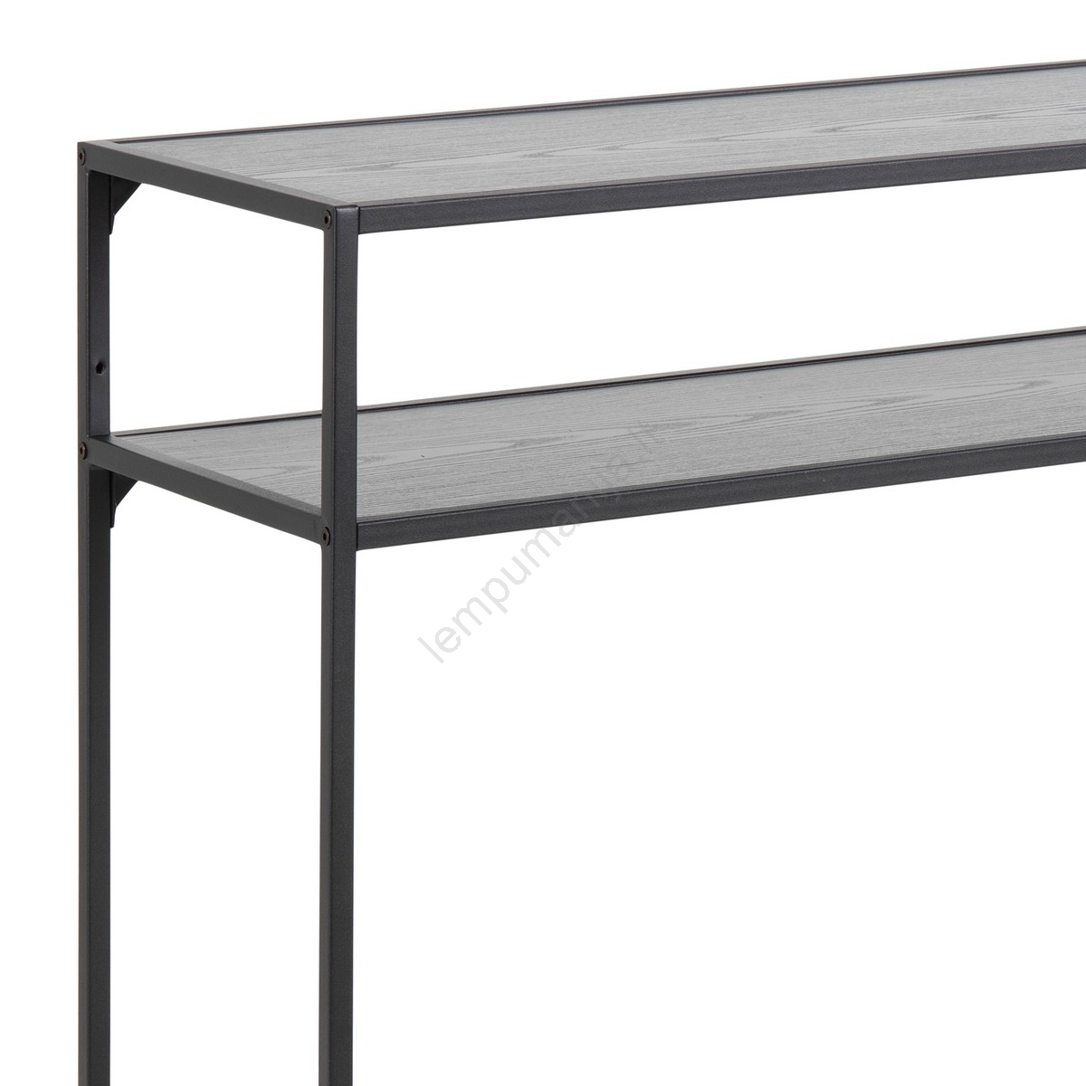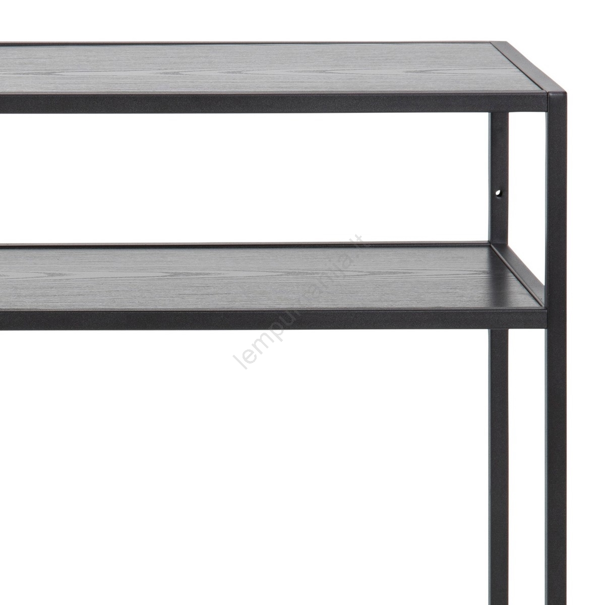 • Viršutinė plokštė ir lentyna – juodas grublėtas melaminas, pagrindas – matinės juodos plieno su grublėtu milteliniu dažymu.