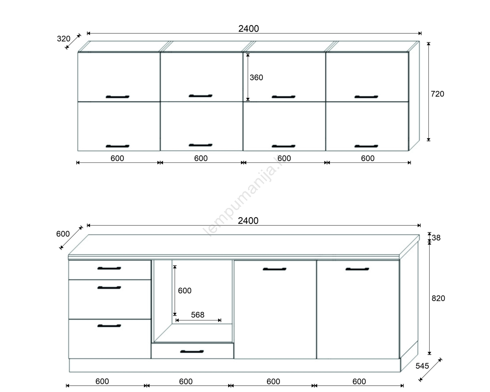 • Spintelių išdėstymas yra modulinis, virtuvę galite pritaikyti pagal savo poreikius.