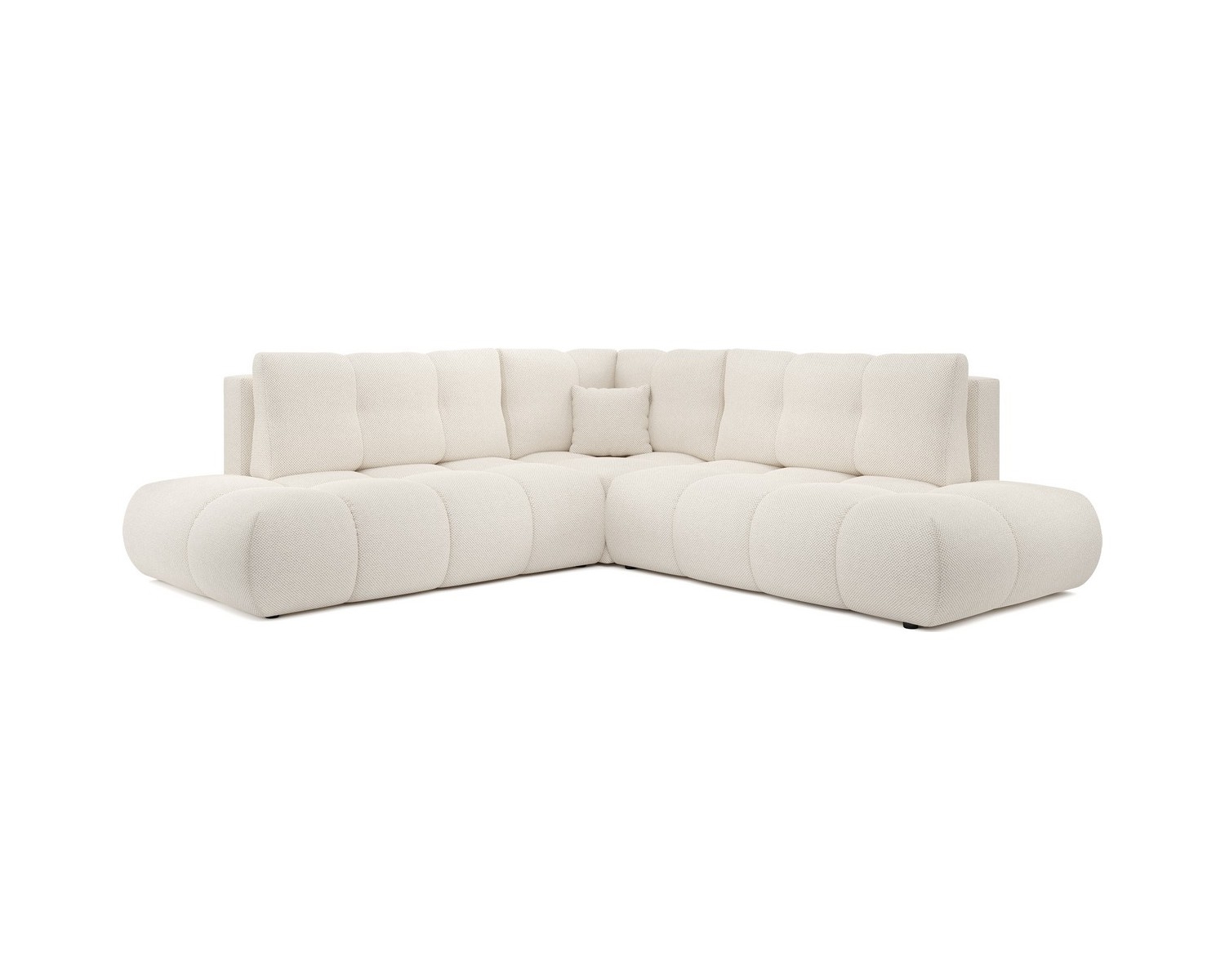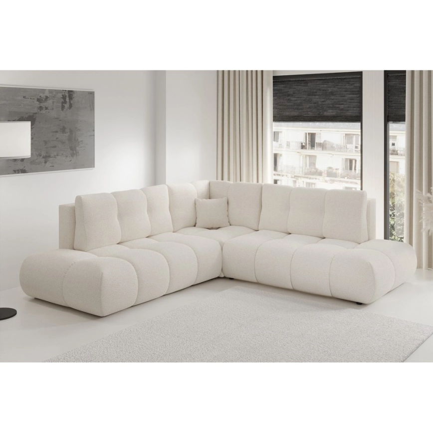 Išskleidžiama apmušta L formos kampinė sofa ALMADA, kairinė, smėlinė, su talpiu daiktų skyriumi | Le