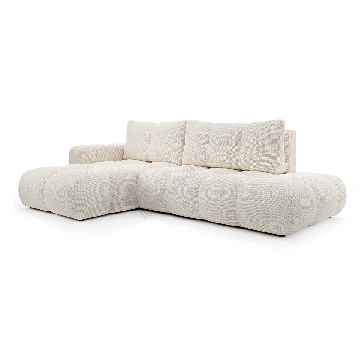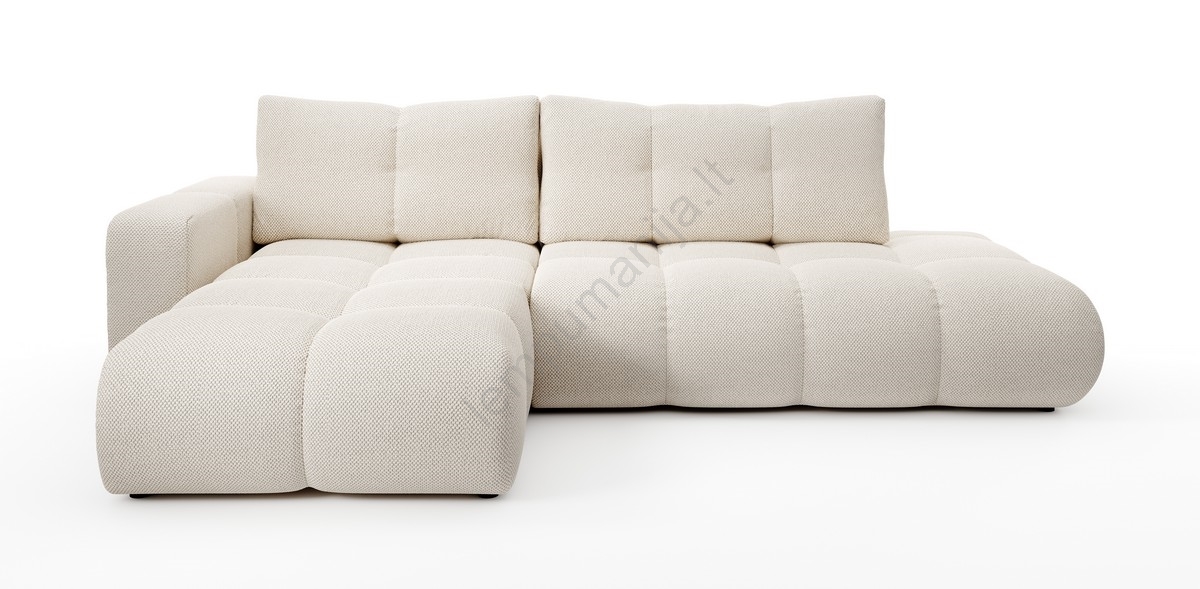 • ALMADA L formos išskleidžiama apmušta kampinė sofa, kairinė, su daiktų dėže, šviesiai smėlio spalvos