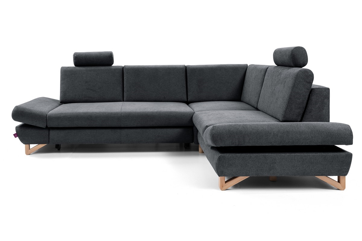 • Išskleidžiama L formos kampinė apmušta sofa-lova su daiktų laikymo vieta AVESTA antracitas