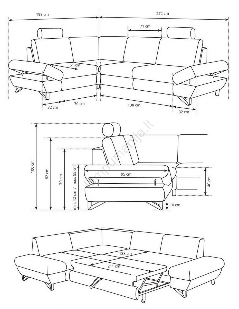 • Sofa turi erdvų laikymo skyrių patalynei ir kitiems sezoniniams daiktams.