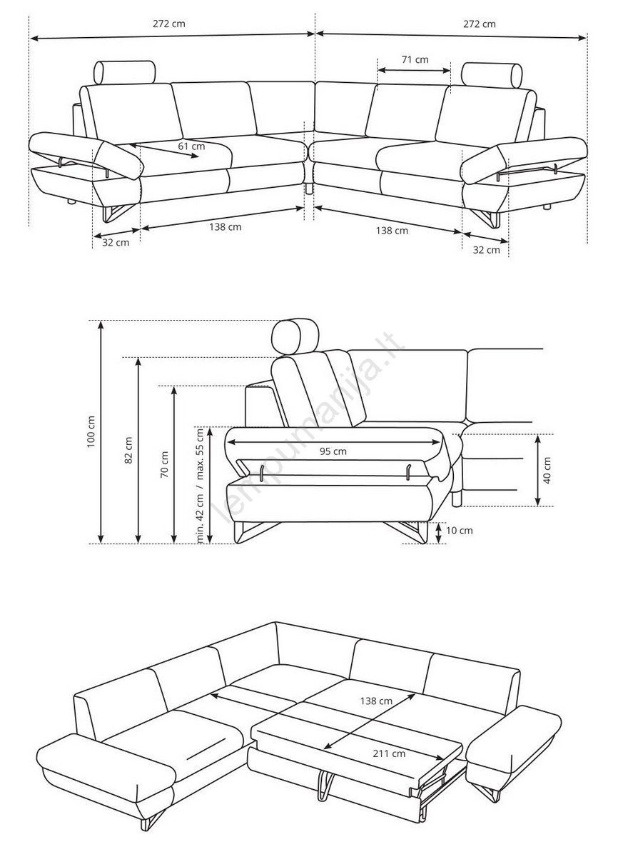 • Moderni išskleidžiama kampinė sofa AVESTA yra ideali pasirinkimas kiekvienam, ieškančiam stiliaus, komforto ir praktiškumo derinio.
