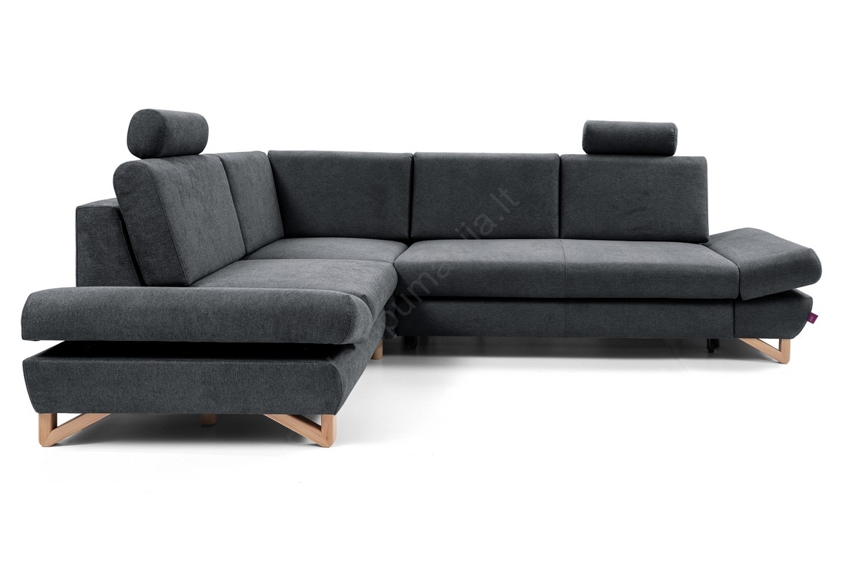 Išskleidžiama apmušta kampinė sofa-lova su sandėliavimo dėže, L formos AVESTA kairinė antracitas
