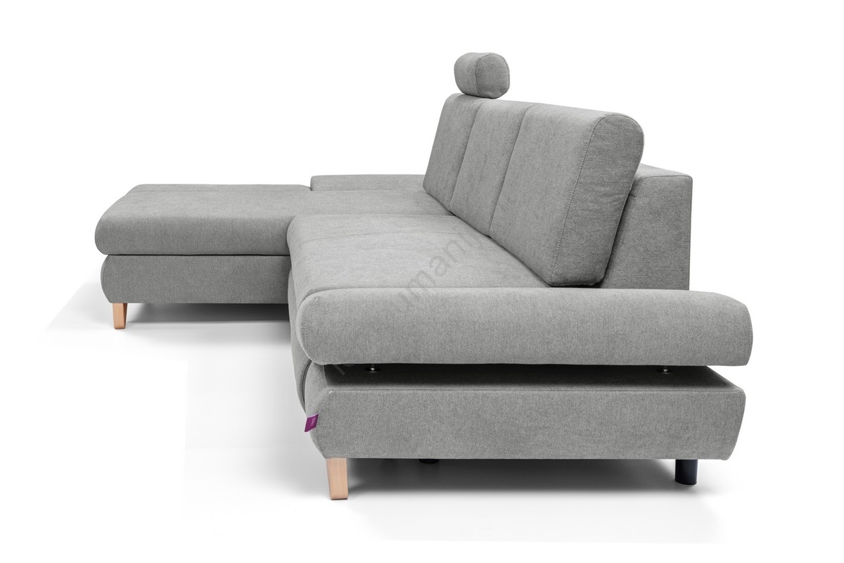 • Išskleidžiama apmušta L formos kampinė sofa AVESTA, dešininė, pilka