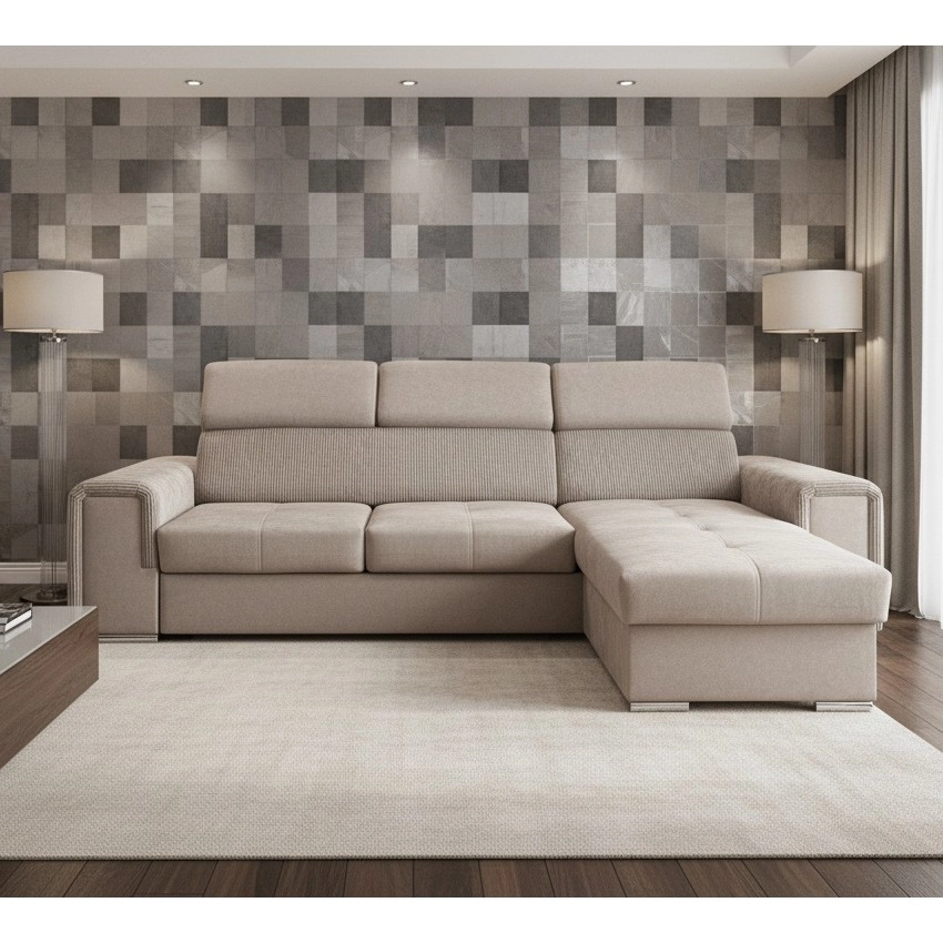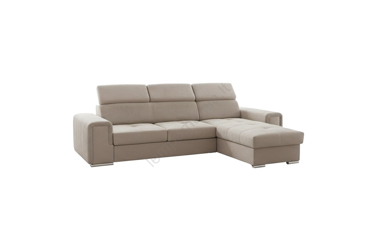 Universali L formos kampinė išskleidžiama sofa su talpia daiktadėže SALVADA, smėlinė | Lempumanija