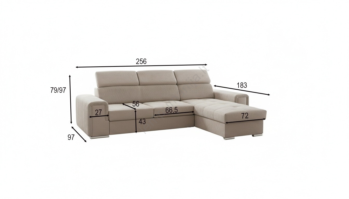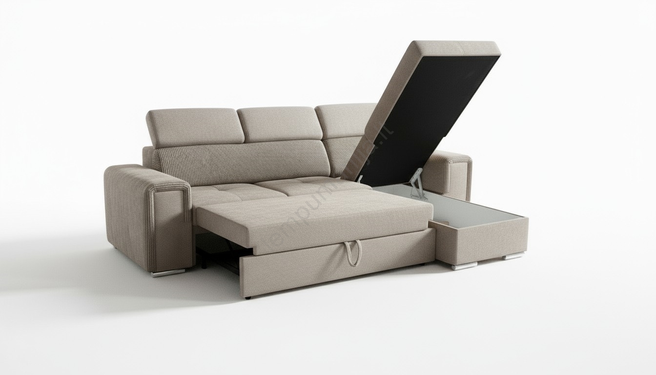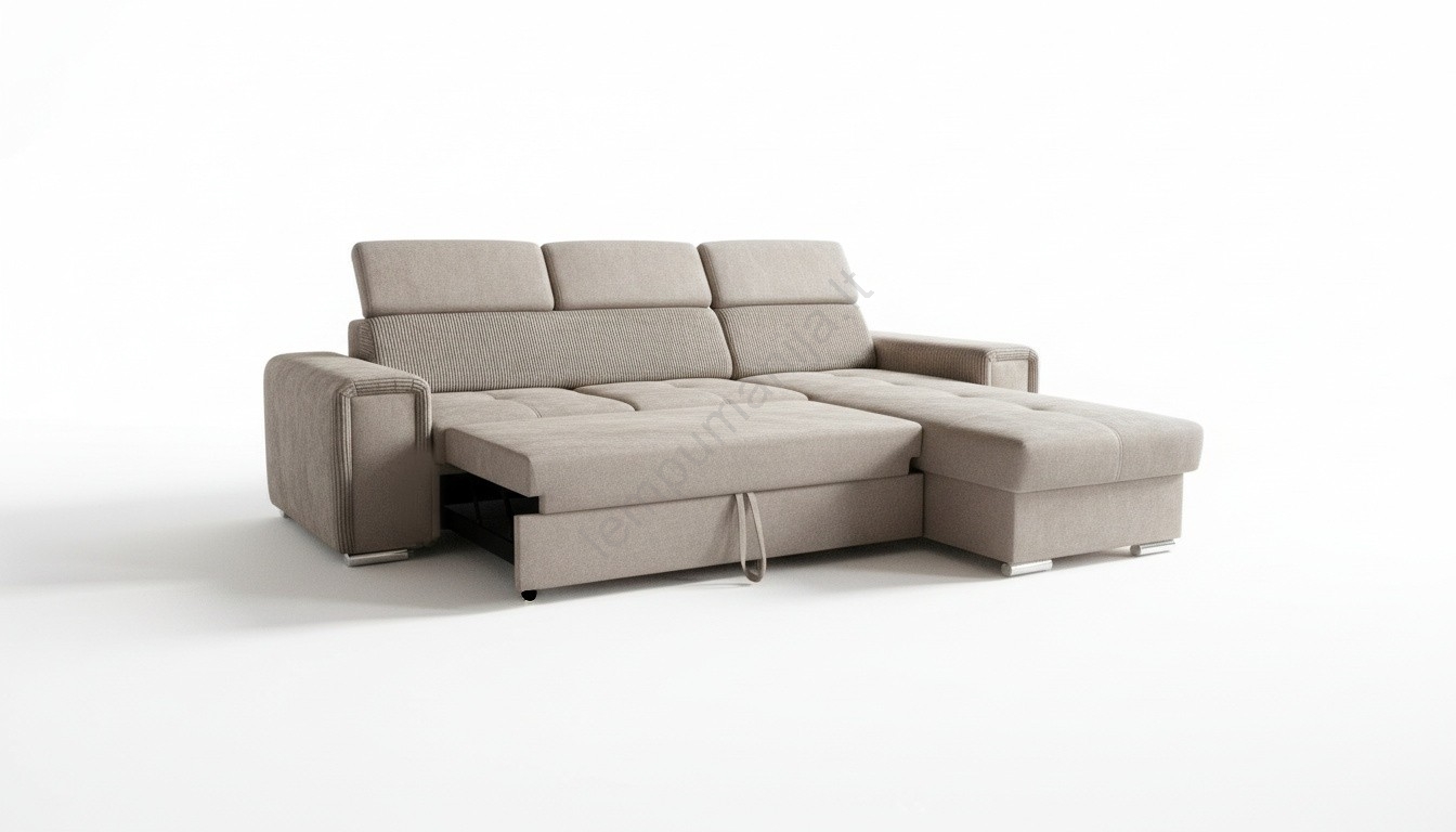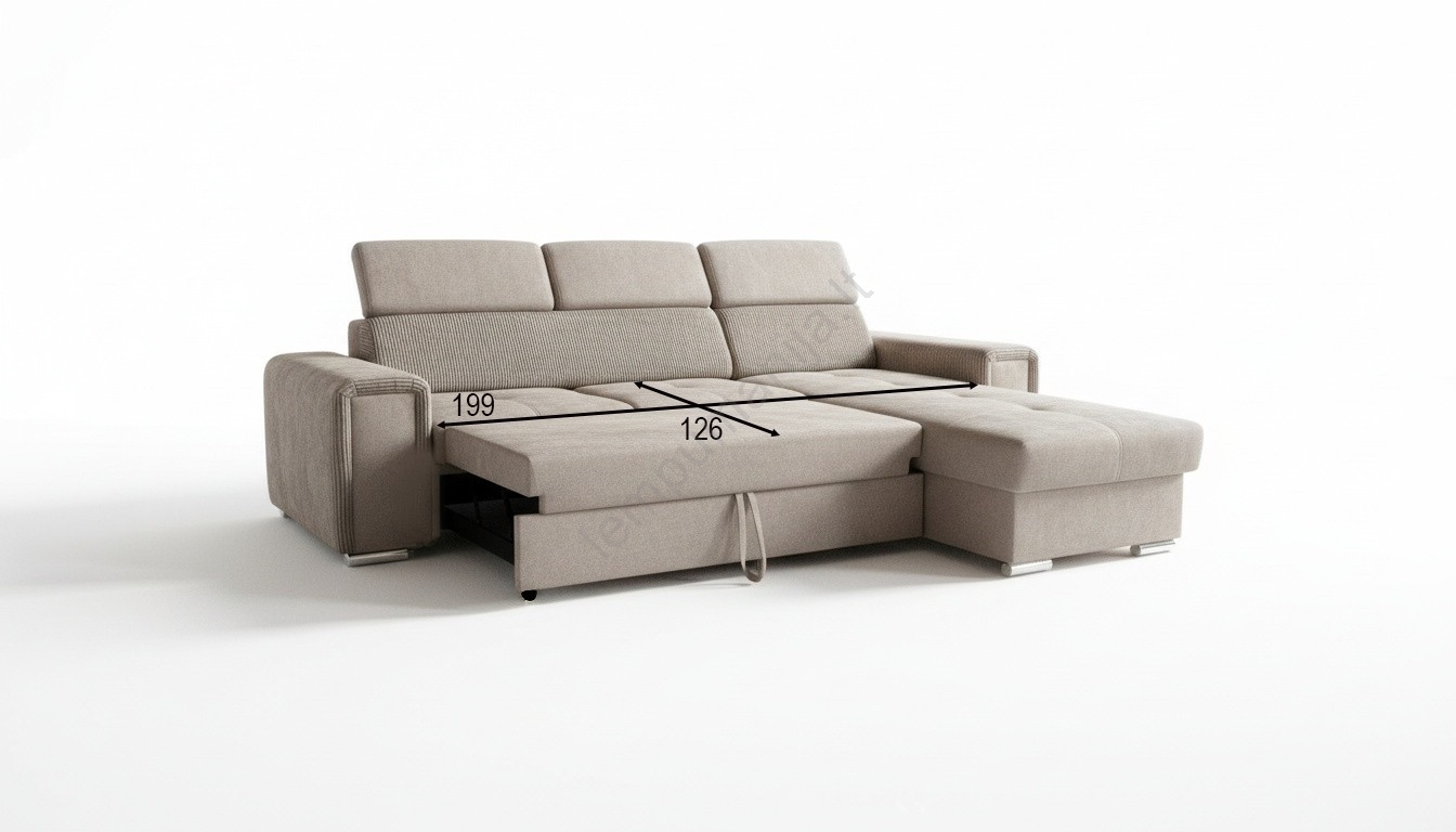 • Universalioji L formos kampinė išskleidžiama sofa su talpia daiktadėže SALVADA, smėlinė