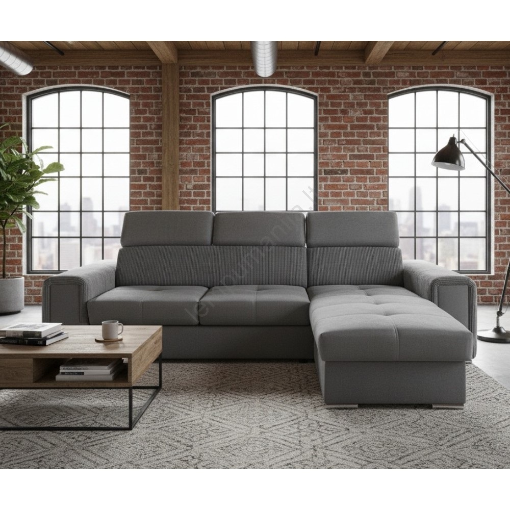 • Erdvi L formos kampinė sofa suderina komfortą ir modernų dizainą.