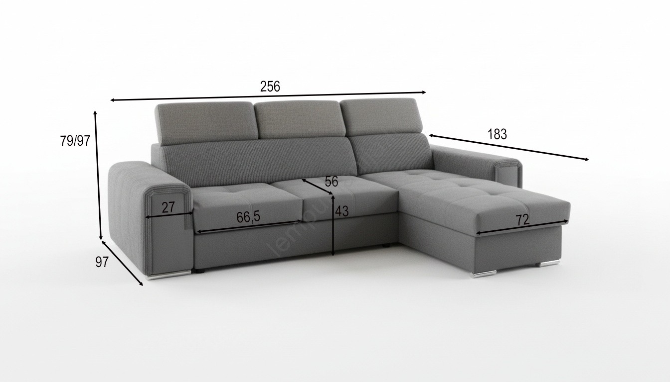 • Sofa siūlo 3 reguliuojamas galvos atramas su 5 padėtimis.
