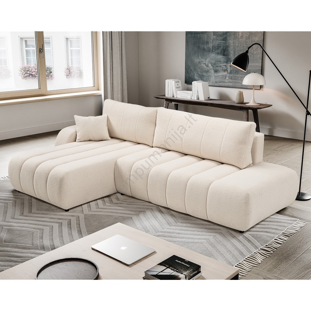 • Išskleidžiama kairinė L formos kampinė sofa DESIO su patalynės dėže, smėlinė