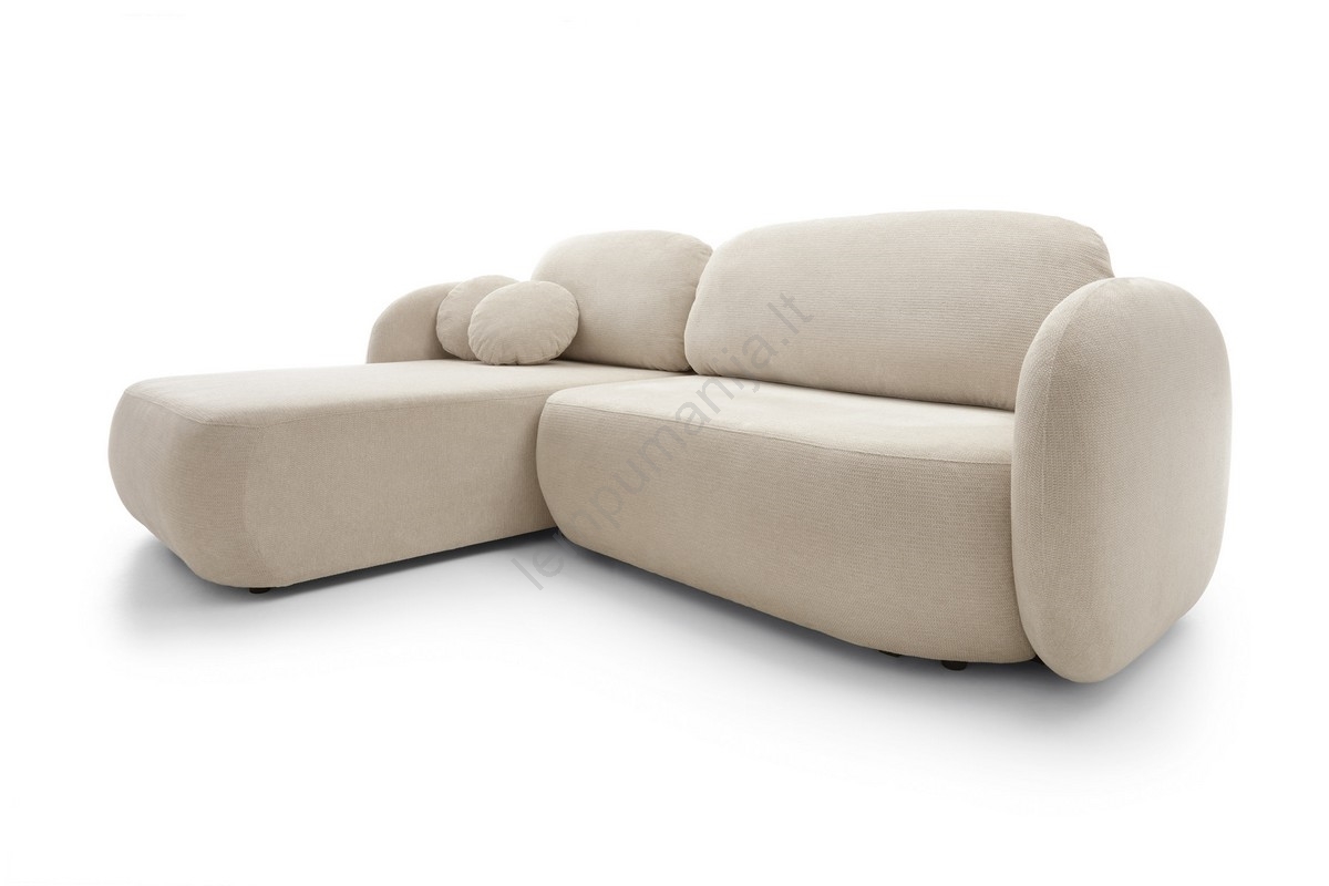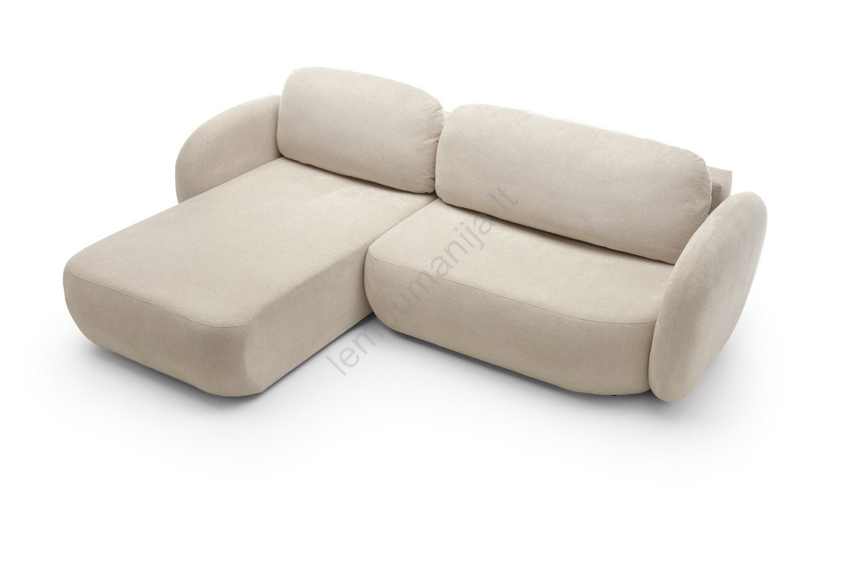 • OLBIA L formos kampinė išskleidžiama sofa-lova su talpia daiktadėže, kairinė, smėlio spalvos