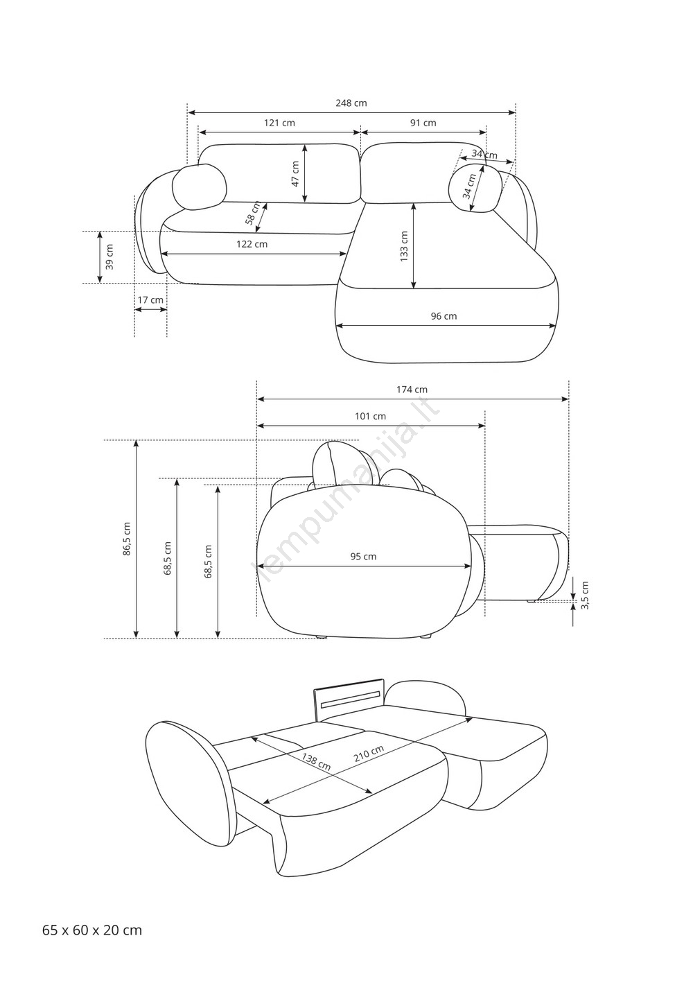 • Dėžė nr. 3: 63 x 98 x 70 cm (23,5 kg).