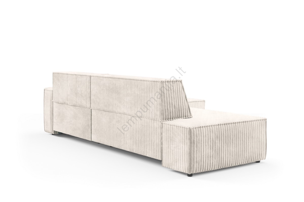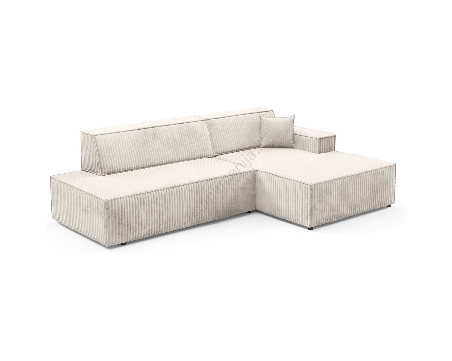 Išskleidžiama L formos dešininė kampinė sofa-lova TERAMO, smėlio spalvos, su patalynės dėže | Lempum