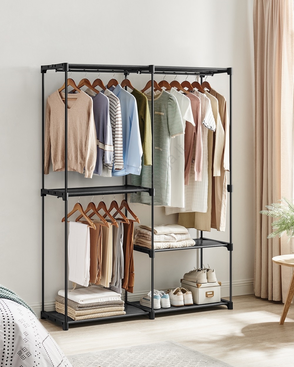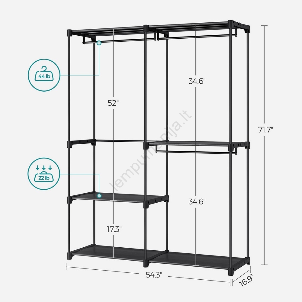 • Dėl 3 drabužių strypų (kiekvienas atlaiko iki 20 kg) galite pakabinti drabužius, diržus ir kaklaraiščius.