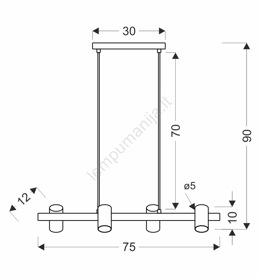Pakabinama liustra ant laido XILO 4xGU10/25W/230V buko/balta | Lempumanija