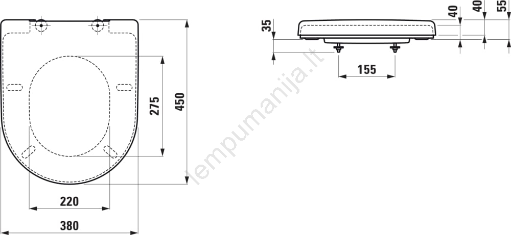 • Lėto uždarymo (soft‑close) mechanizmas užtikrina diskretišką, lėtą ir tylų sėdynės uždarymą.