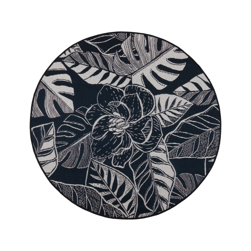 Lauko kilimas JUNGLE 135 cm juoda/balta/lapų raštas