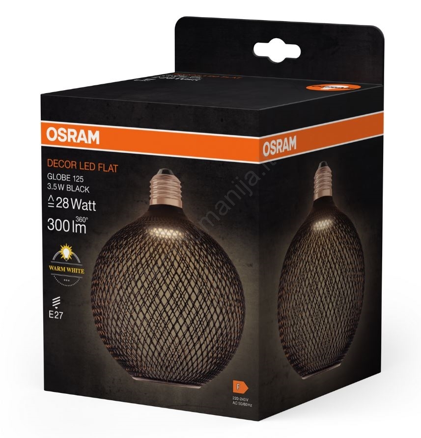 LED elektros lemputė DECOR FLAT G125 E27/3,5W/230V 2700K juoda - Osram | Lempumanija