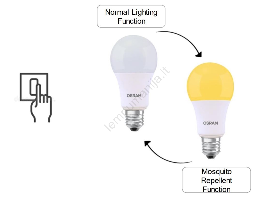 • 2 funkcijos – skleidžia baltą šviesą arba galima įjungti/išjungti/įjungti įprastu sieniniu jungikliu vabzdžius atbaidantį šviesos režimą.