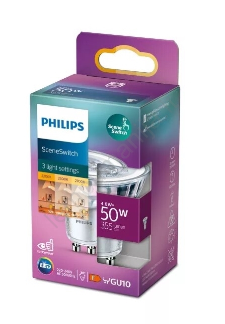 LED lemputė Philips SCENE SWITCH PAR16 GU10/4,8W/230V 2200/2500/2700K | Lempumanija