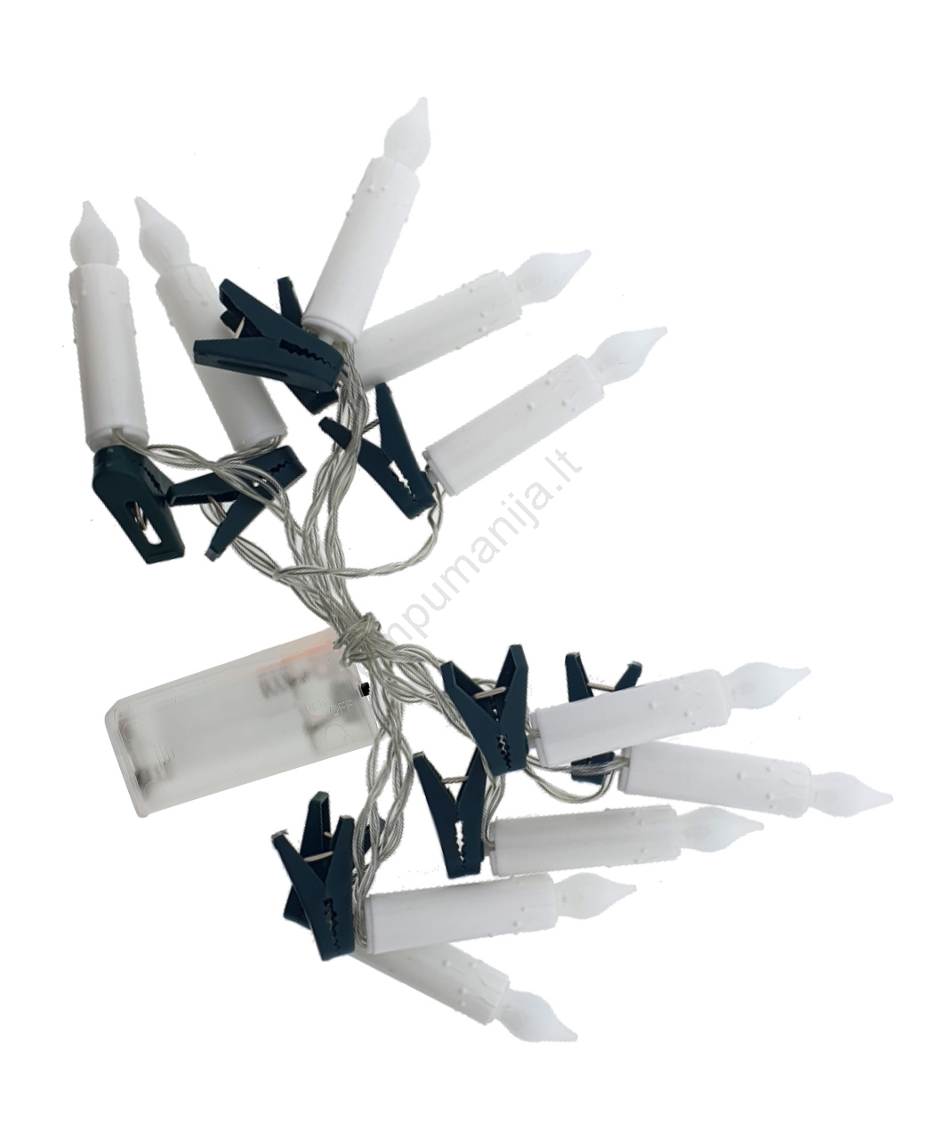 LED kalėdinė dekoratyvinė girlianda 10xLED/2xAA 1,65 m šiltai baltos žvakutės | Lempumanija