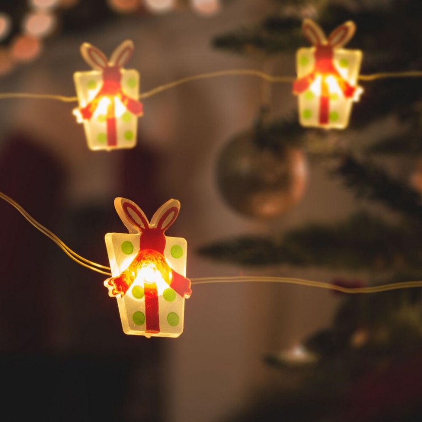 • Dekoratyvinis LED girlianda su šviesos taškais, primenančiais Kalėdų dovanų formą.