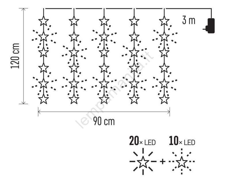 • Kabinamų žvaigždžių ilgis: 120 cm.
