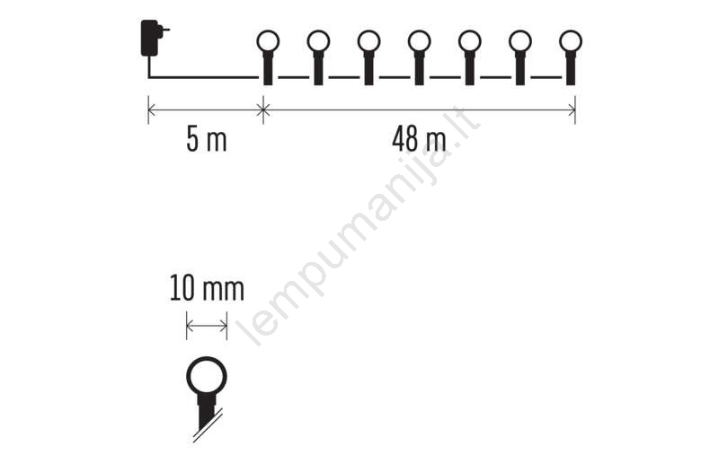 • Apšviesto kabelio ilgis: 48 m.