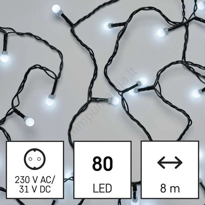 • LED lauko girlianda 80 LED / 2 režimai 13 m IP44 šilta/šalta balta