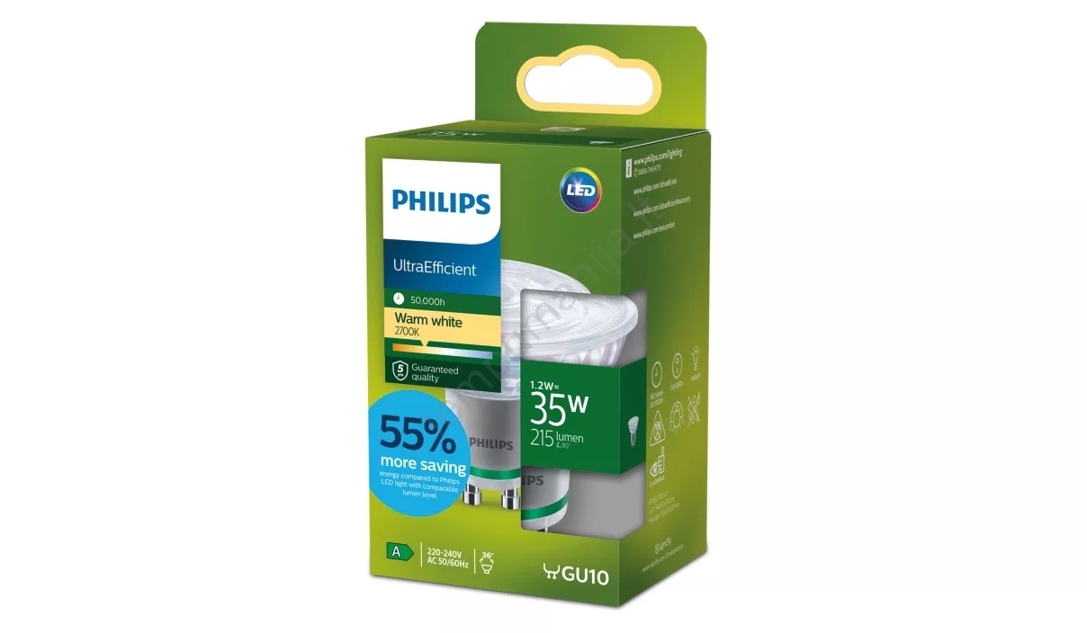 LED lemputė ULTRAEFFICIENT Philips PAR16 GU10/1,2W/230V 2700K