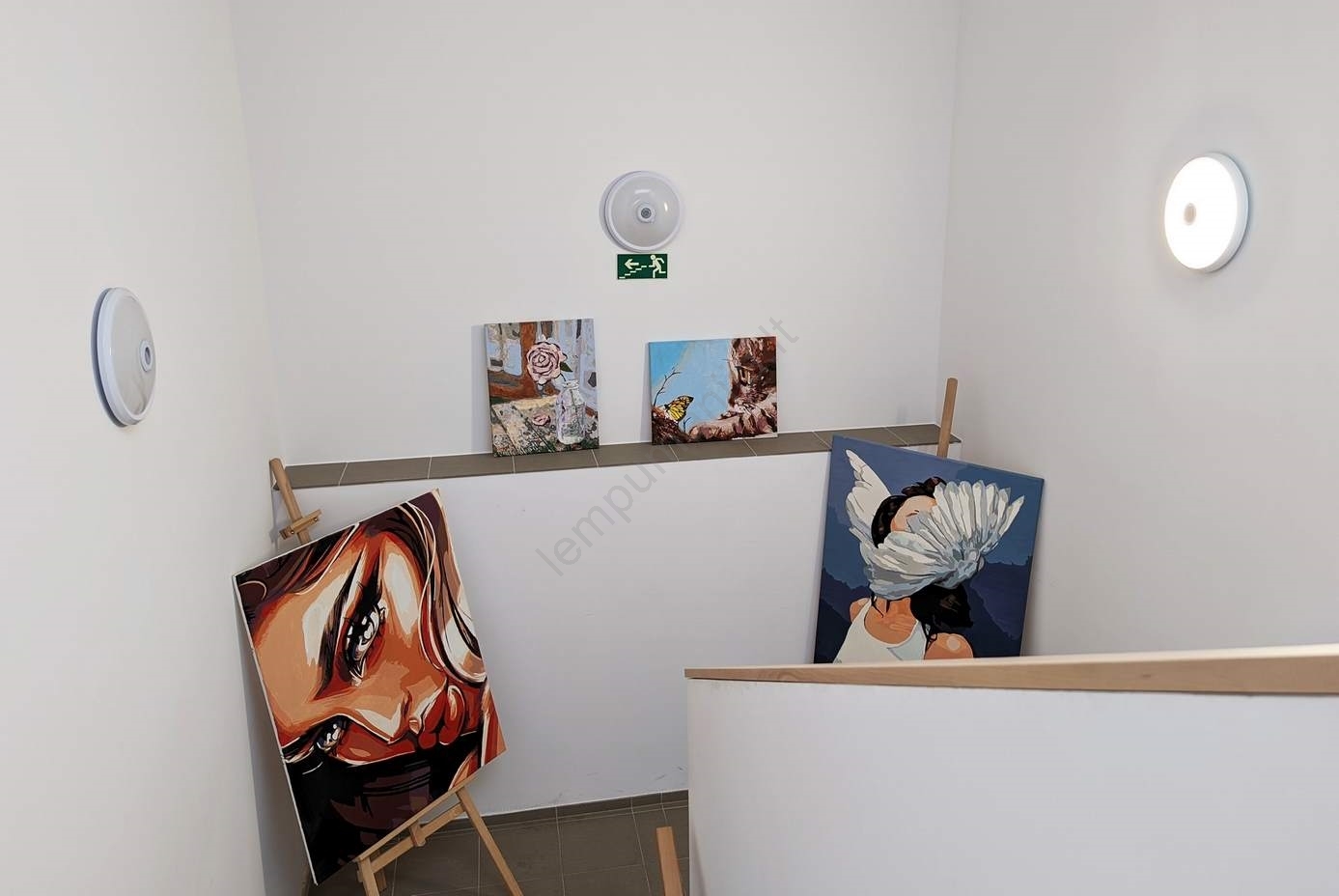 LED lauko lubinis šviestuvas su judesio ir sutemos jutikliu LED/16W/230V, skersmuo 28,5 cm, IP54, baltas