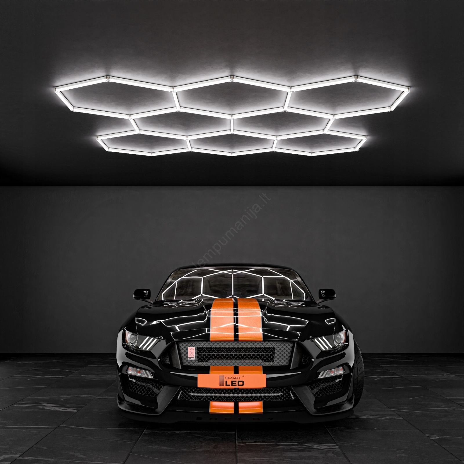 • Dėl šešiakampės struktūros apšvietimas veikia tiek kaip estetinė detalė, tiek kaip funkcionali šviesos sistema.