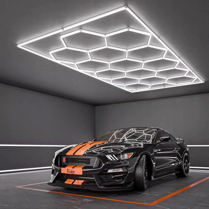 • Dėl šešiakampės struktūros apšvietimas veikia ir kaip estetinė detalė, ir kaip funkcionali šviesos sistema.