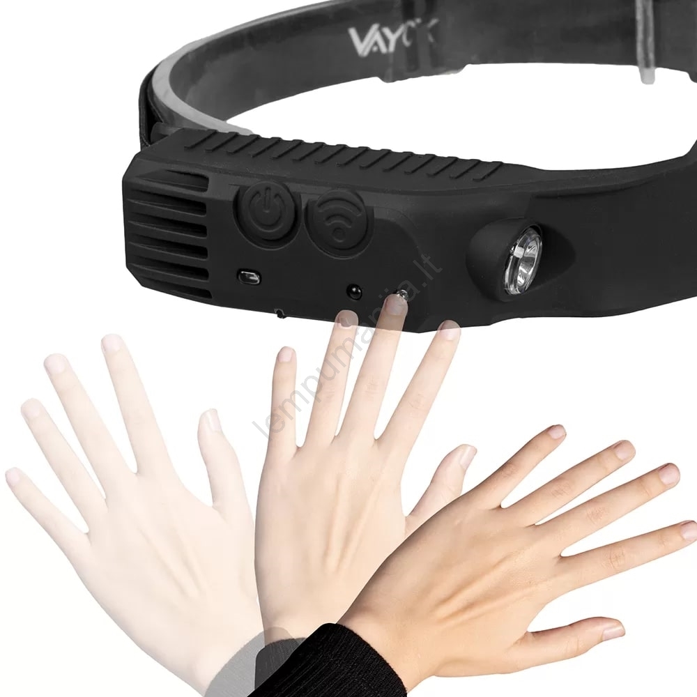 LED Pritemdomas įkraunamas galvos žibintas su jutikliu 3xLED/5V IP44 300 blizgus 1200 mAh | Lempuman