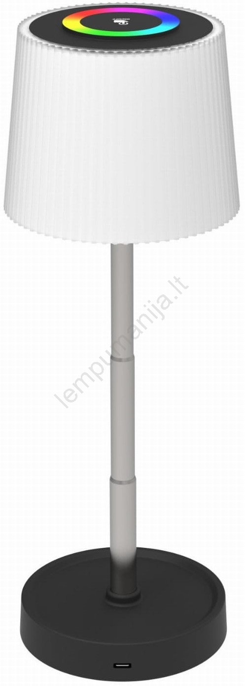 LED RGBW reguliuojamas lauko įkraunamas stalinis šviestuvas LED/2W/5V IP44 1200 mAh pilkas | Lempuma