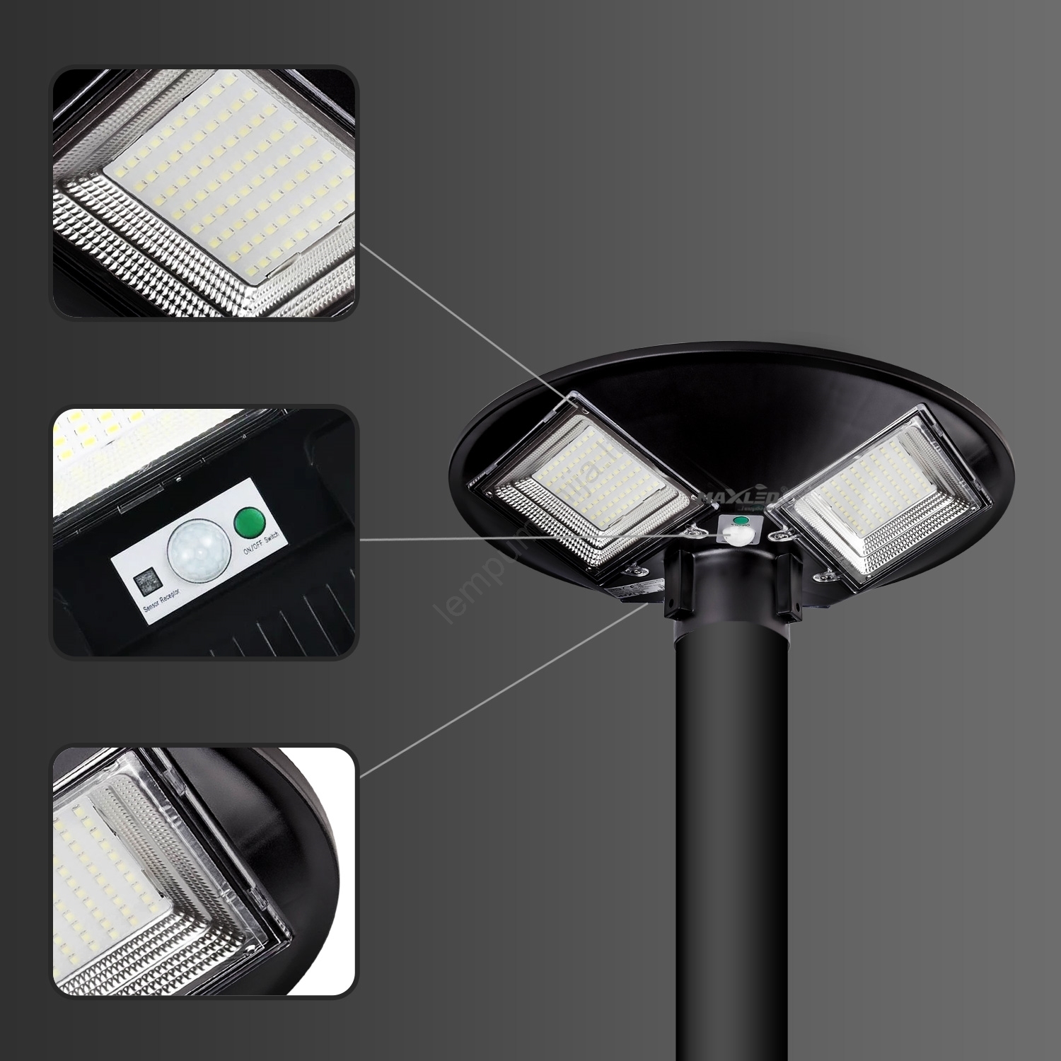 Reguliuojamas LED saulės gatvės šviestuvas su jutikliu LED/15W/6V 11000 mAh 6500K IP65 juodas + nuotolinis valdymas