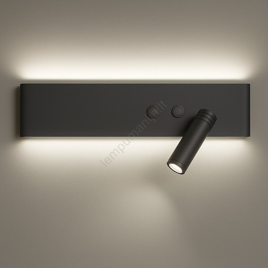 LED sieninis taškinis šviestuvas RESORT LED/10W/230V + LED/3W, juodas, dešininis | Lempumanija