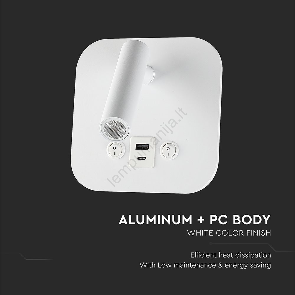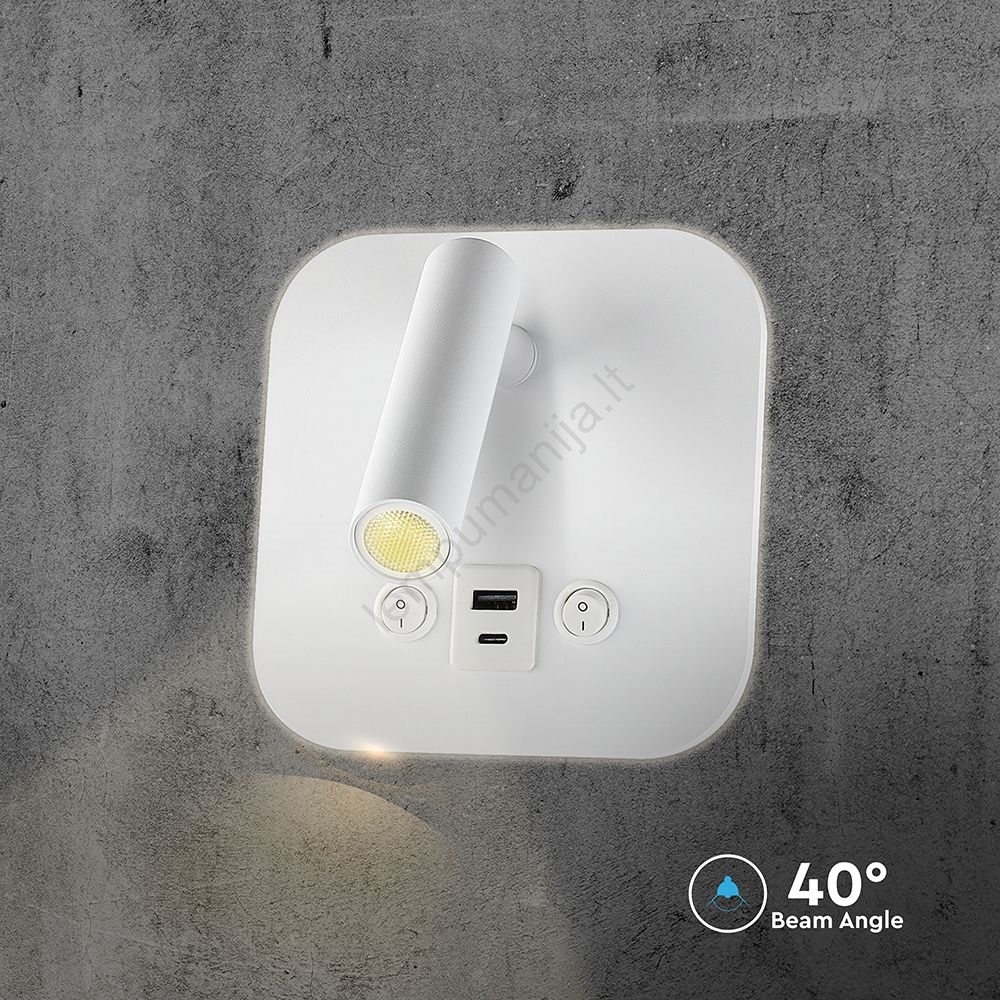 LED sieninis taškinis šviestuvas su USB prievadu, 8 W / 230 V / 3000 K, balta | Lempumanija