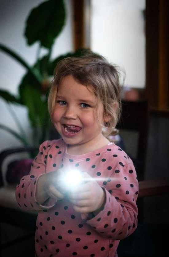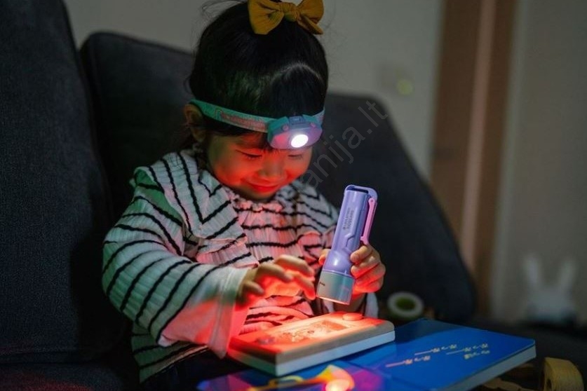 • Vaikiškas rankinis žibintuvėlis, sukurtas specialiai mažiesiems tyrinėtojams ir jų jautrioms akims.