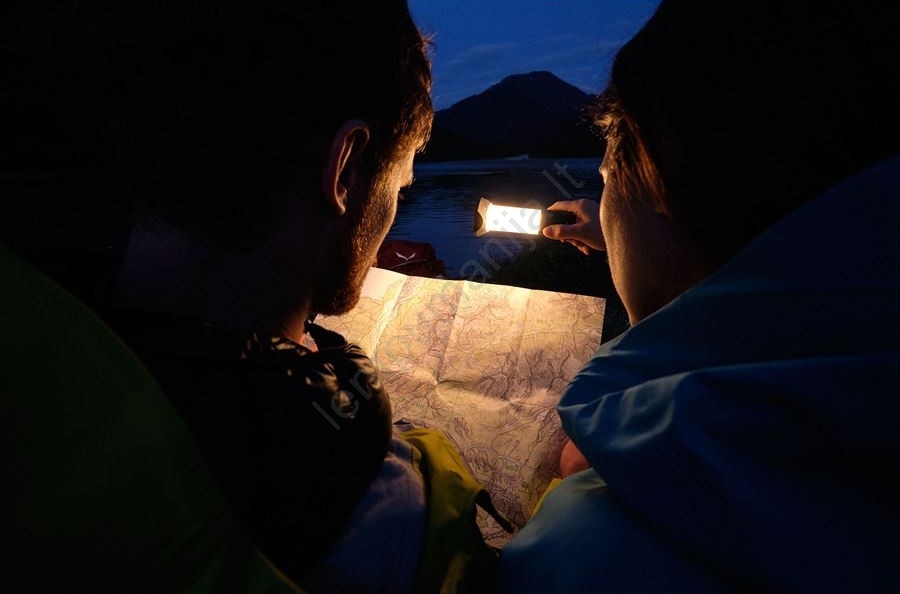 • Žibintas naudoja šiltą baltą LED, papildytą raudona šviesa, kuri saugo naktinį matymą ir puikiai tinka diskretiškam apšvietimui gamtoje.