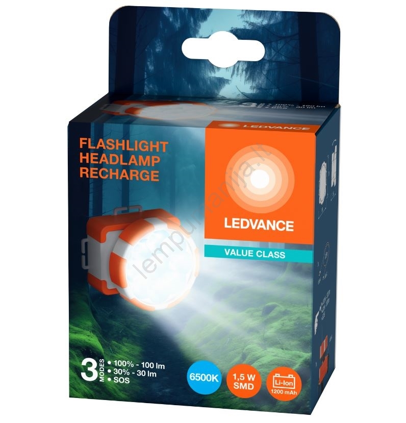 Ledvance - LED įkraunamas žibintuvėlis ant galvos FLASHLIGHT LED/1,5W/5V 1200 mAh | Lempumanija