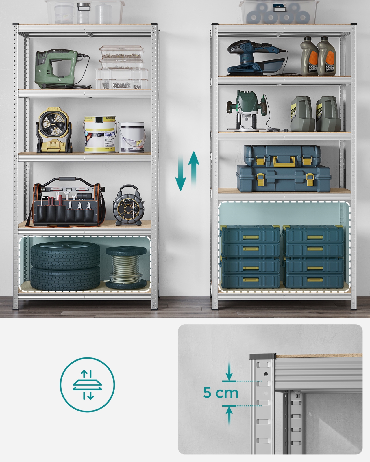 • Kiekviena lentyna atlaiko iki 120 kg ir saugiai talpina dažus, įrankius bei sporto įrangą.